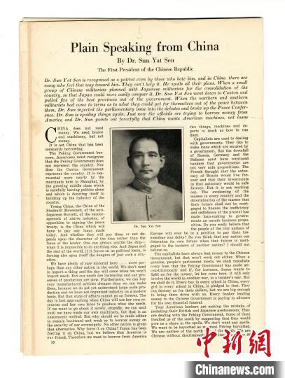 孫中山《中國人之直言》。廣州孫中山大元帥府紀念館 供圖