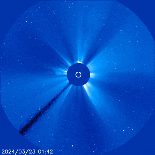 再加之此次日冕物質拋射過程發生的位置幾乎正對地球。從地球看去,噴發物形成一個圓面,也就是“全暈”。此類爆發活動噴出的太陽物質相對地球速度快、覆蓋度高,可能會引起比較強的地磁活動。