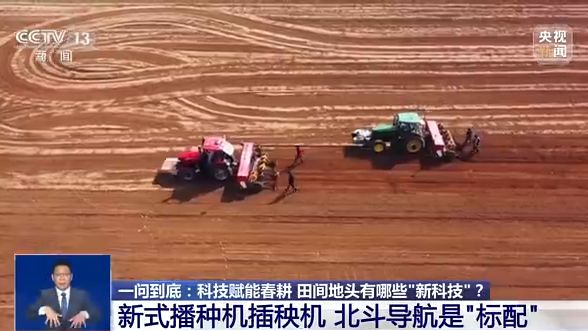 我們先去新疆看看——自帶北斗導航的播種機。在新疆昌吉瑪納斯縣六戶地鎮(zhèn)的千畝春小麥種植基地,裝有北斗導航系統(tǒng)的大馬力拖拉機,帶著改良后的新式播種機,正在進行春小麥播種。這種播種機可按照預先設(shè)定的線路進行精量播種,而且覆土、鋪設(shè)滴灌帶也同步完成,不僅實現(xiàn)了全程機械化,還提高了作業(yè)精度和效率,每天可比傳統(tǒng)播種機多播50畝地左右。