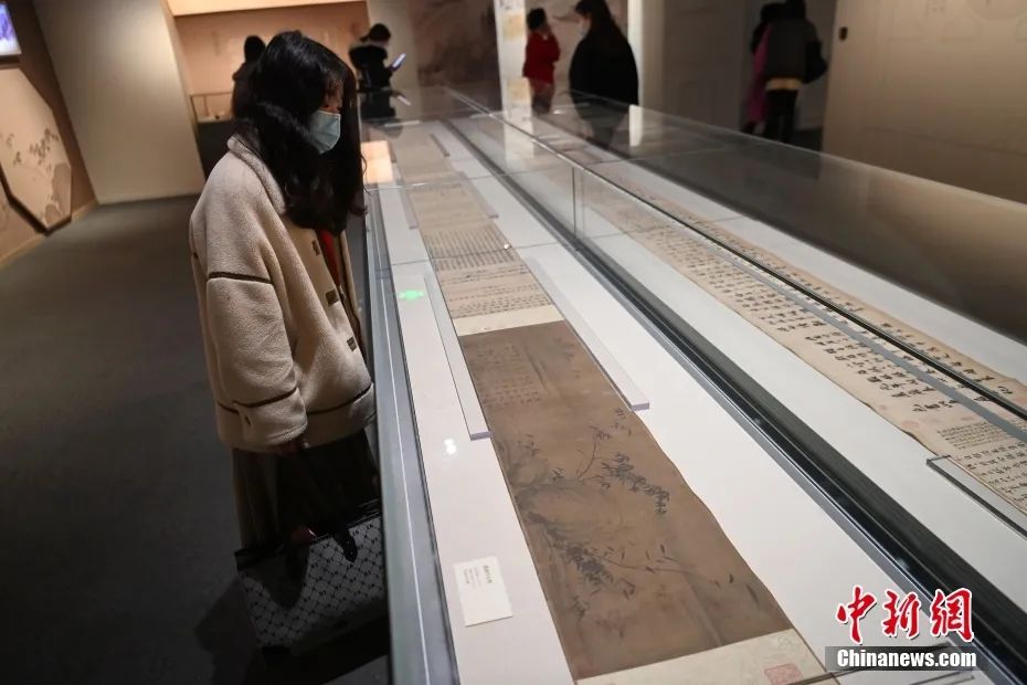2023年1月16日,四川成都,四川博物院跨年大展“高山仰止回望東坡——蘇軾主題文物特展”迎來文物上新,《瀟湘竹石圖》《洞庭春色賦·中山松醪賦卷》《陽羨帖》手卷三件蘇軾真跡齊聚。圖為中國美術館藏蘇軾《瀟湘竹石圖》。中新社記者 安源 攝