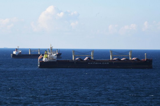 2022年8月6日,從烏克蘭出發(fā)的第二批運糧船抵達土耳其伊斯坦布爾的博斯普魯斯海峽黑海入??诟浇#ㄐ氯A社記者沙達提攝)