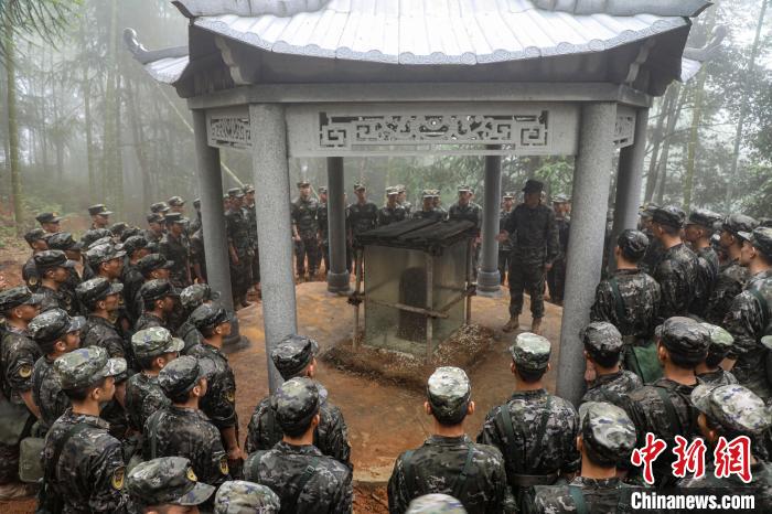 官兵徒步行軍至武夷山市洋莊鄉(xiāng)小漿村張山頭無名紅軍烈士墓群,開展“追尋紅色印記、賡續(xù)紅色血脈”參觀見學(xué)活動。中新社記者 張麗君 攝