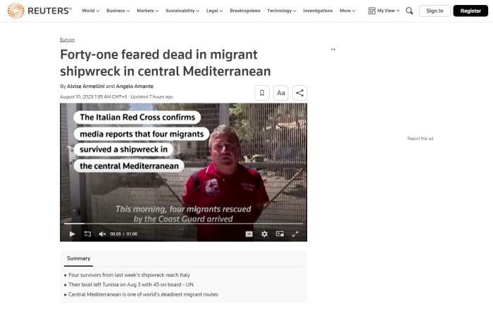 據路透社報道,該艘移民船3日從突尼斯斯法克斯地區出發,但在當天夜間就因大浪襲擊而傾覆沉沒。船上共載有45人,其中包括3名兒童。目前4人幸存,41人可能遇難。