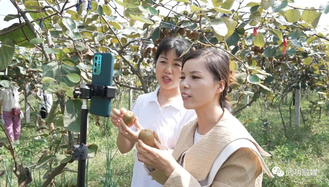 圖為主播在獼猴桃園內直播。武功縣融媒體中心 供圖