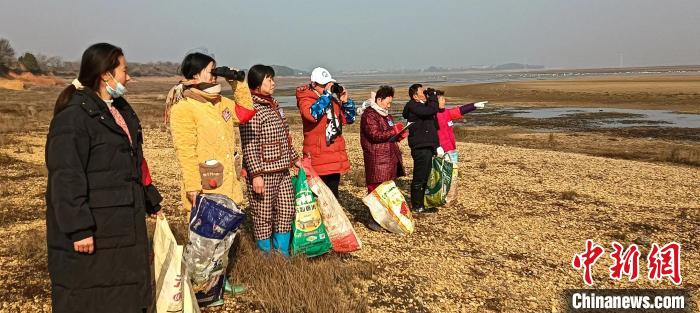 中新網江西都昌1月12日電(巫發陽 杜春泉 余齊民)隆冬時節,走進江西九江市都昌縣鄱陽湖畔,都昌縣鄱陽湖野生動物救護協會段慶縣一行人正在鄱陽湖濕地巡護,他們一邊觀察候鳥的生活情況,一邊撿拾濕地的遺留垃圾,湖面上吹來的陣陣寒風吹不滅他們的滿腔熱血。