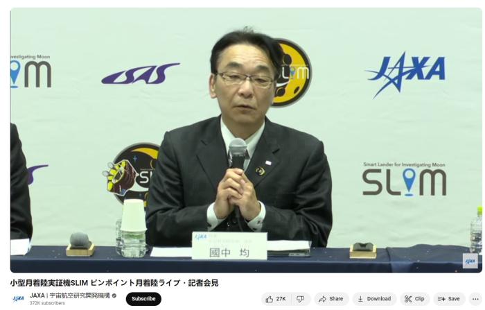 JAXA宇宙科學研究所所長國中均在新聞發布會上講話。圖片來源:日本宇宙航空研究開發機構(JAXA)直播截圖