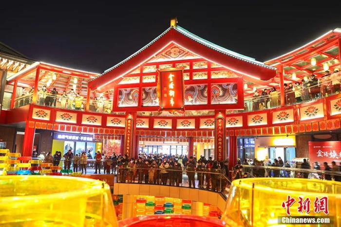 圖為無人機航拍古色古香年味十足的繩金塔歷史文化街區(qū),燈火璀璨,人潮涌動。 劉力鑫 攝