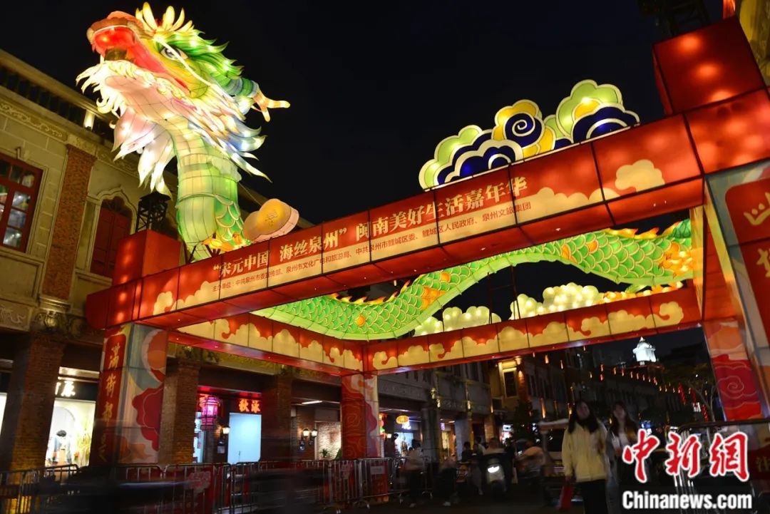 福州三坊七巷古街區游人如織,龍形燈飾點亮新春氛圍。中新社記者 王東明 攝