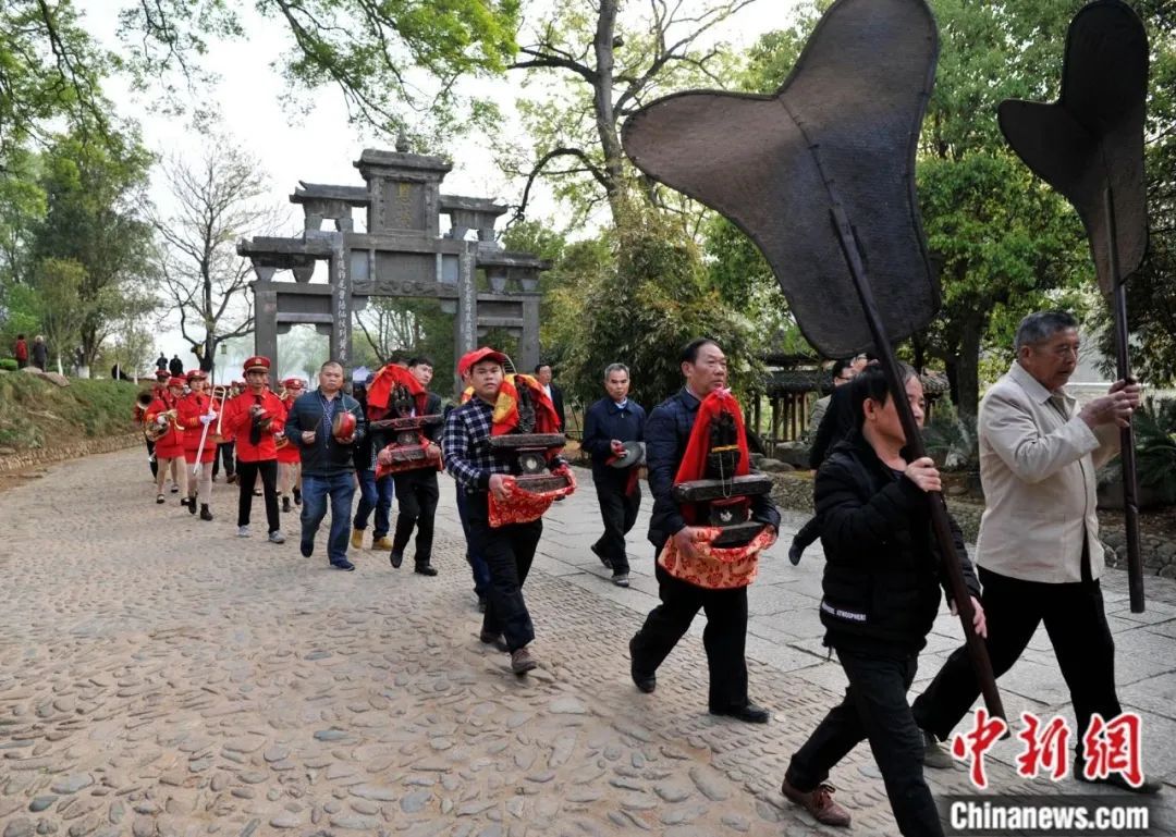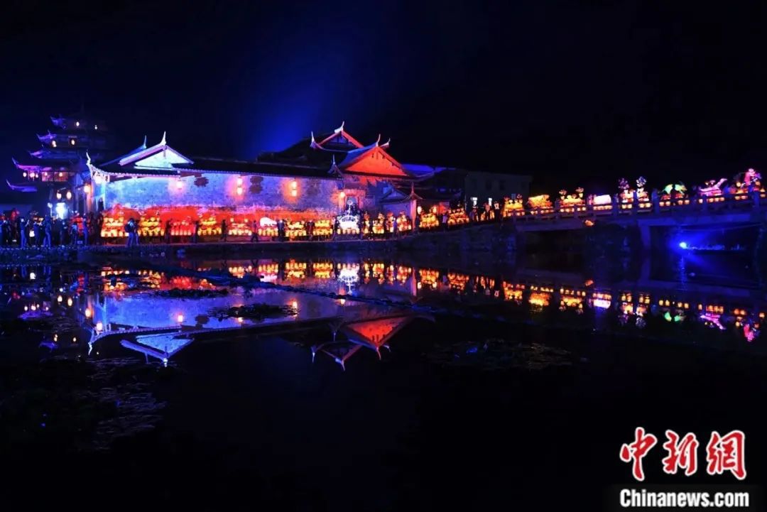 村民們抬著各種造型的燈籠穿行在古村落里。中新社記者 張斌 攝
