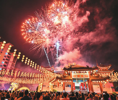馬來西亞首都吉隆坡拍攝的天后宮煙花表演。