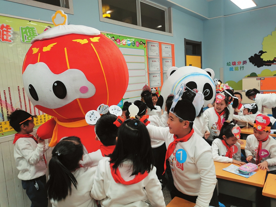 1月4日,太原市新建路小學內,冬奧會吉祥物“冰墩墩”“雪容融”正在與孩子們互動。據了解,當日該校開啟“樂考迎冬奧 一起向未來”一二年級樂考活動。通過“冬奧”禮儀、“冬奧”吉祥物我來做等項目測評內容,采用游園走班式樂考,讓孩子們在樂考中走近“冬奧會”、了解“冬奧會”。(記者阮洋攝)