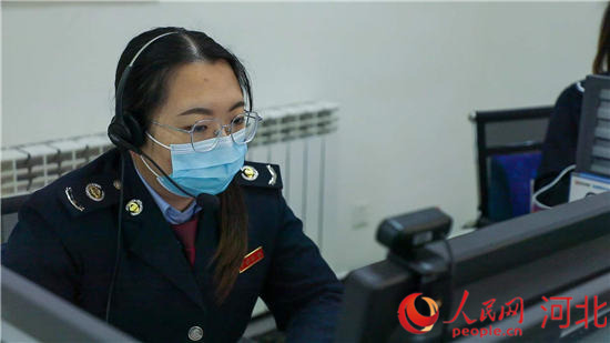 安國市“線上稅費支持中心”的工作人員通過同屏指引功能幫助納稅人辦理相關業務。 班靜怡攝