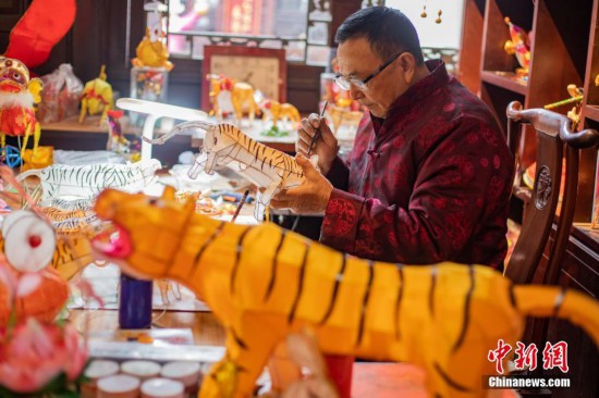 南京民間藝人趕制“虎”年花燈迎新春