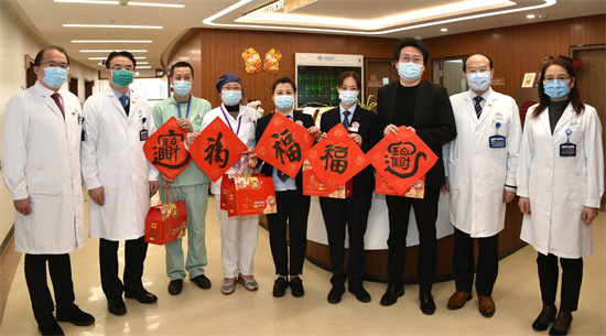 醫院為她們每個人都準備了一份洋溢著濃濃年味的年貨,有魚有肉,有糖有果,院領導還給這些外地職工送上由醫院職工書寫的“福”字,讓留在上海過年的她們可以有滋有味地過年。