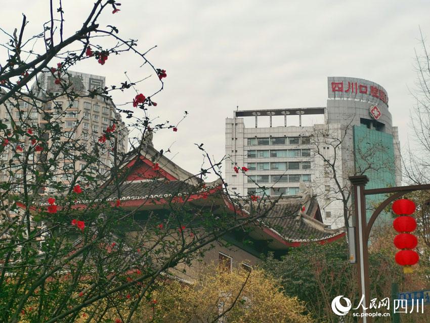 紅梅花已經(jīng)迎春綻放,老建筑依舊古色古香。人民網(wǎng) 劉海天攝