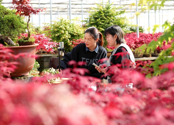 春節(jié)過后,三角梅也迎來銷售旺季,仲維國顯得更忙了。他是江蘇沭陽縣“資深”的返鄉(xiāng)創(chuàng)業(yè)者,如今在當?shù)仡伡?zhèn)堰下村“幸福花海”淘寶市場內(nèi)經(jīng)營著6座花木大棚,主要從事苗木和花卉盆景的電商銷售。