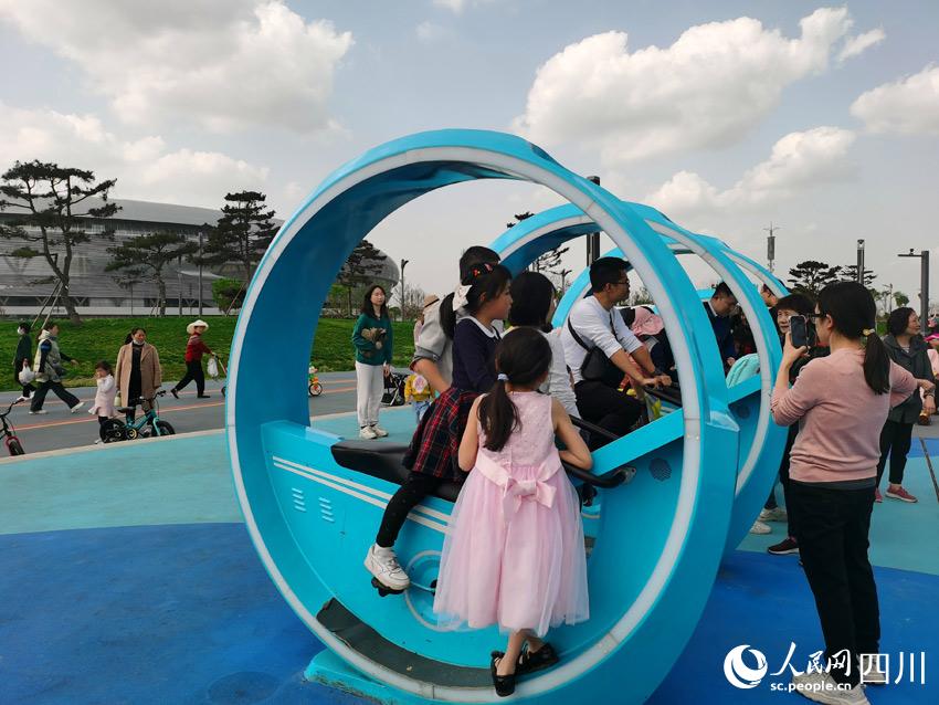 體育公園里,體育元素多。除了場館和火炬塔這樣宏大的建筑,園里還有很多體育文化的痕跡。比如,在小廣場上,排列著一排特殊的“自行車”,是供游客們騎踏健身用的。很多孩子被它奇特的外形所吸引,紛紛上去玩耍體驗,大人們就在旁邊照看著,當起了專職安全員和攝影師。這樣的體育氛圍和運動經歷,相信會在孩子們的心靈里留下快樂的記憶、埋下健康的種子,陪伴他們幸福美好的一生。