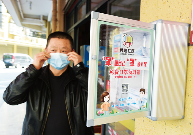 近日,浙江義烏福田街道興隆社區在轄區內主干道出入口、人員密集的超市、藥店、快遞點等地設置免費口罩領取箱,箱里放滿了口罩,箱體上寫著“文明領取,每人限領一個”。活動開展半個月以來,6個免費口罩領取箱共送出近6000個口罩。興隆社區黨委書記黃俊鋼表示,除了設立免費口罩領取箱,社區還大力開展佩戴口罩勸導活動。(錢旭升)