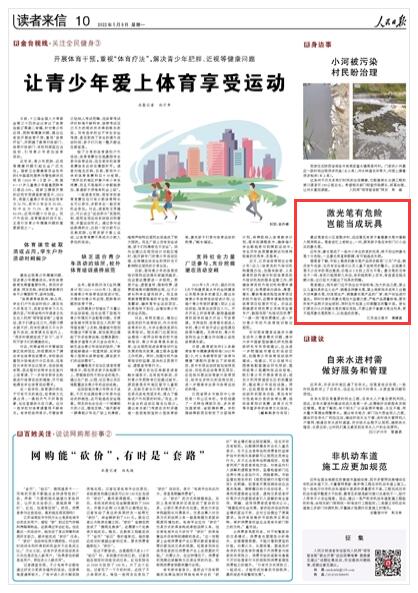 人民日報刊發連云港讀者來信:激光筆有危險 豈能當成玩具