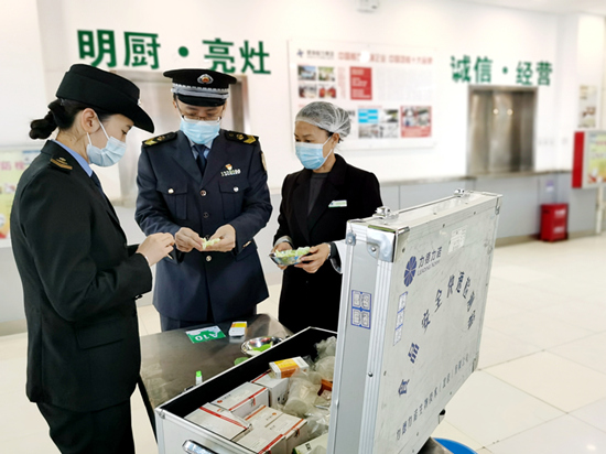 邢臺(tái)市市場監(jiān)管部門執(zhí)法人員到邢臺(tái)市第二幼兒園檢查“明廚亮灶”情況。 陳克家攝
