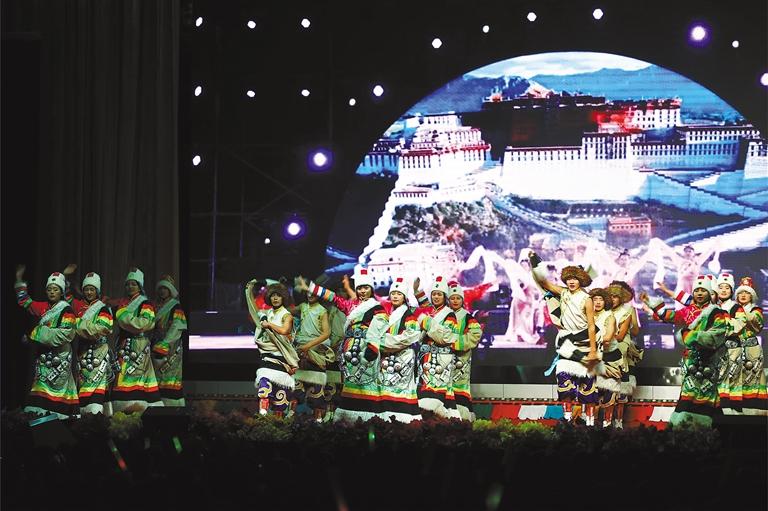 拉薩北京實驗中學學生表演民族舞蹈。 (本版圖片均由拉薩北京實驗中學提供)