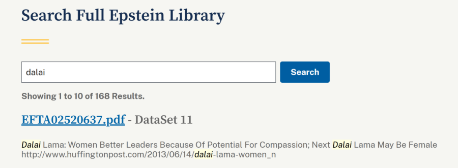 2月5日,媒體發(fā)現(xiàn)關(guān)鍵詞“dalai”在愛潑斯坦檔案中出現(xiàn)168次