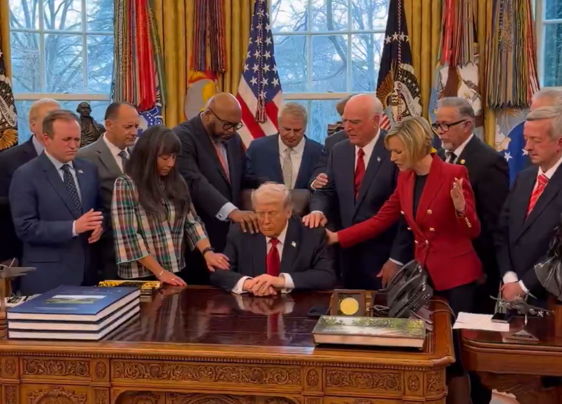特朗普與來自全美各地的牧師一同祈禱 圖:觀察者網