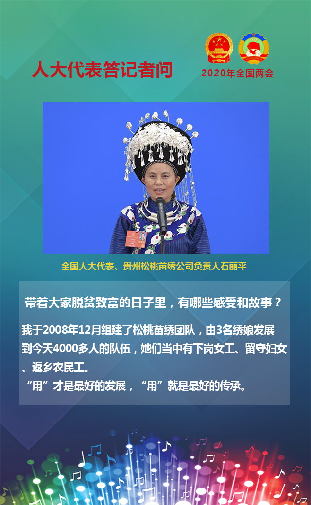 全國人大代表、貴州松桃苗繡公司負責人石麗平