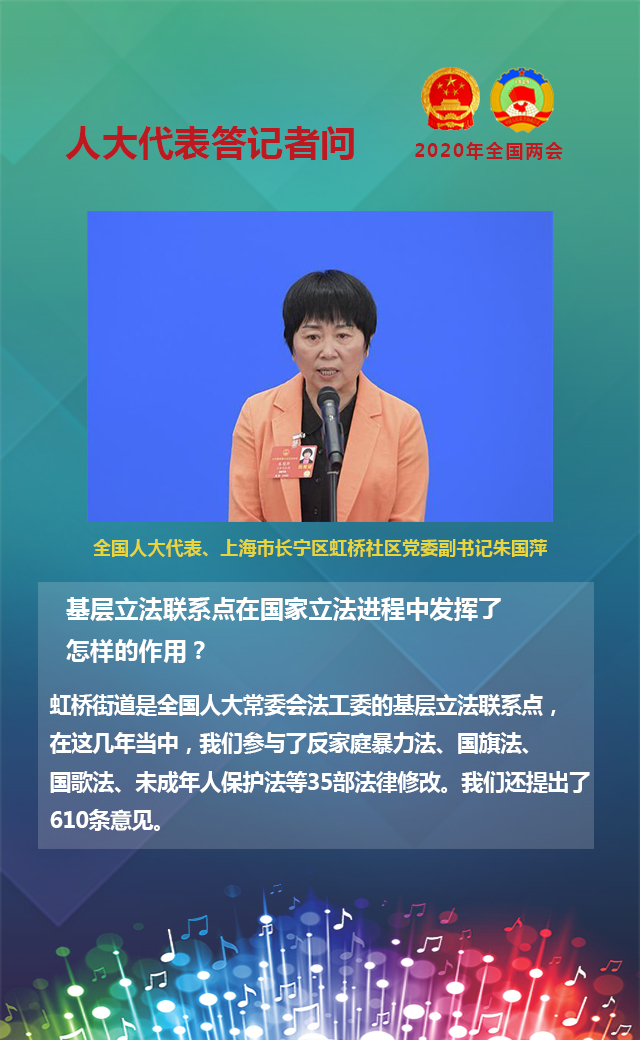 虹橋街道是全國人大常委會法工委的基層立法聯系點,在這幾年當中,我們參與了反家庭暴力法、國旗法、國歌法、未成年人保護法等35部法律修改。我們還提出了610條意見。