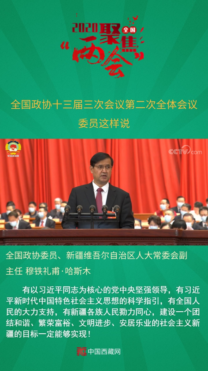 全國政協委員、新疆維吾爾自治區人大常委會副主任穆鐵禮甫·哈斯木發言說,有以習近平同志為核心的黨中央堅強領導,有習近平新時代中國特色社會主義思想的科學指引,有全國人民的大力支持,有新疆各族人民勠力同心,建設一個團結和諧、繁榮富裕、文明進步、安居樂業的社會主義新疆的目標一定能夠實現!
