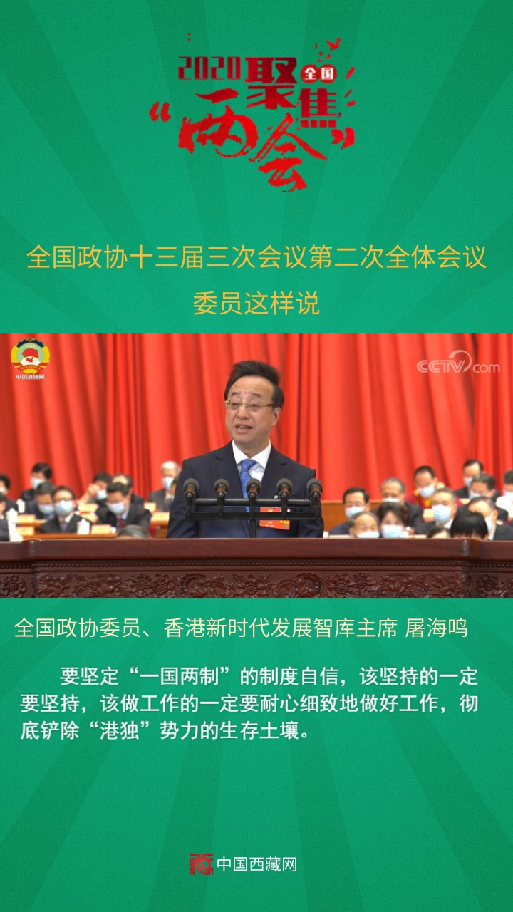 全國政協委員、香港新時代發展智庫主席屠海鳴發言說,要堅定“一國兩制”的制度自信,該堅持的一定要堅持,該做工作的一定要耐心細致地做好工作,徹底鏟除“港獨”勢力的生存土壤。