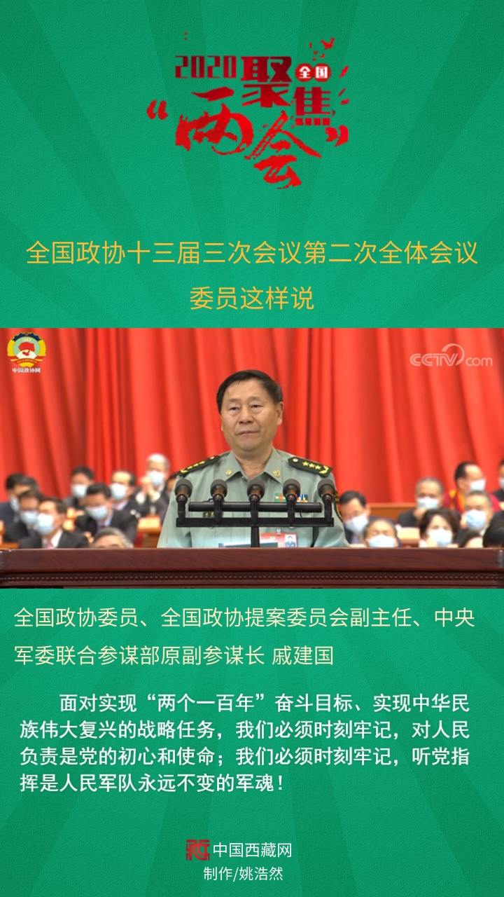 全國政協委員、全國政協提案委員會副主任、中央軍委聯合參謀部原副參謀長戚建國發言說,面對實現“兩個一百年”奮斗目標、實現中華民族偉大復興的戰略任務,我們必須時刻牢記,對人民負責是黨的初心和使命;我們必須時刻牢記,聽黨指揮是人民軍隊永遠不變的軍魂!