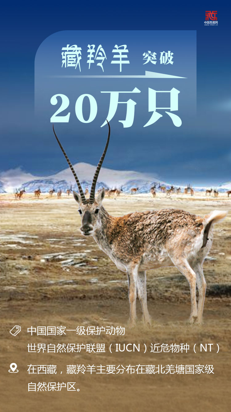 經過多年的努力,西藏各類瀕危野生動物種群數量均得到恢復性增長,黑頸鶴、藏羚羊、野牦牛、藏野驢等個體數量正在穩步增加。2016年9月,世界自然保護聯盟(IUCN)將藏羚羊的受威脅程度降為“近危”(NT)。一度“瀕危”的藏羚羊,如今其種群數量在幾十年間從5萬只左右增加至20萬只以上。