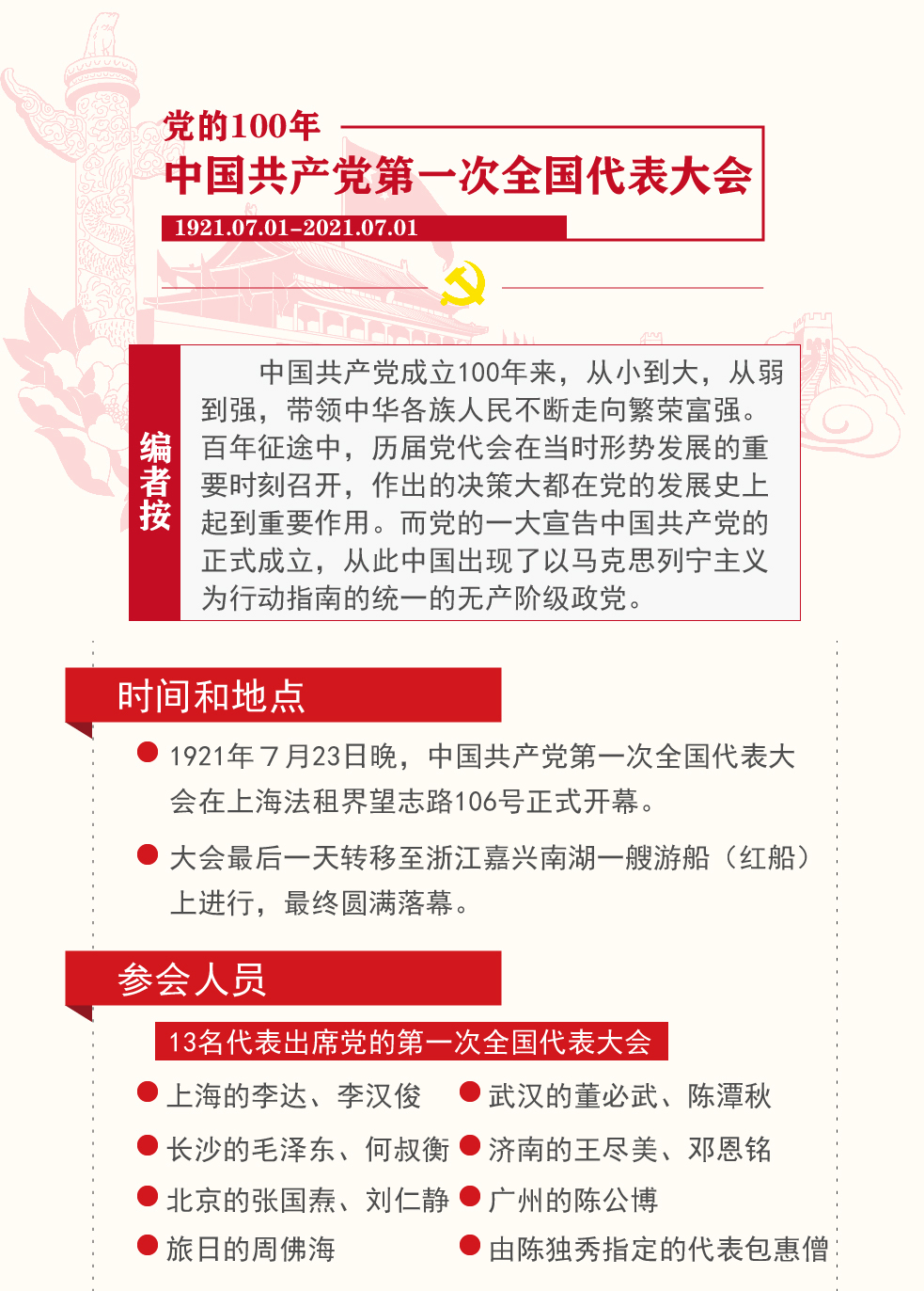 長圖|【黨的100年】中國共產黨第一次全國代表大會