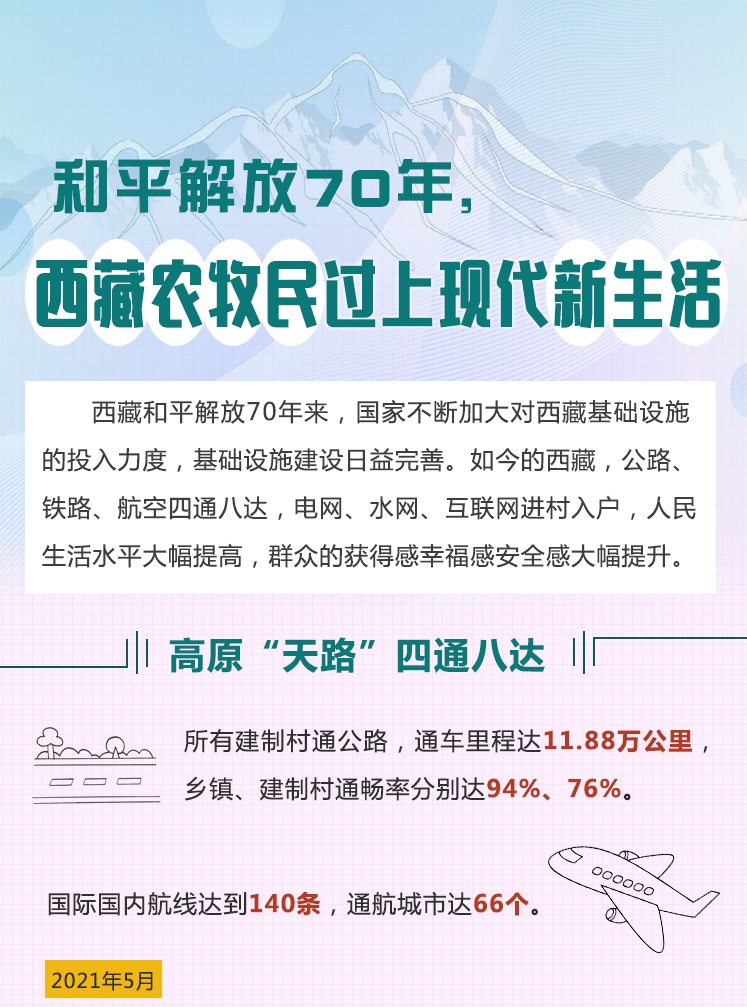 西藏和平解放70年來,國家不斷加大對西藏基礎(chǔ)設(shè)施的投入力度,基礎(chǔ)設(shè)施建設(shè)日益完善。[詳細(xì)]