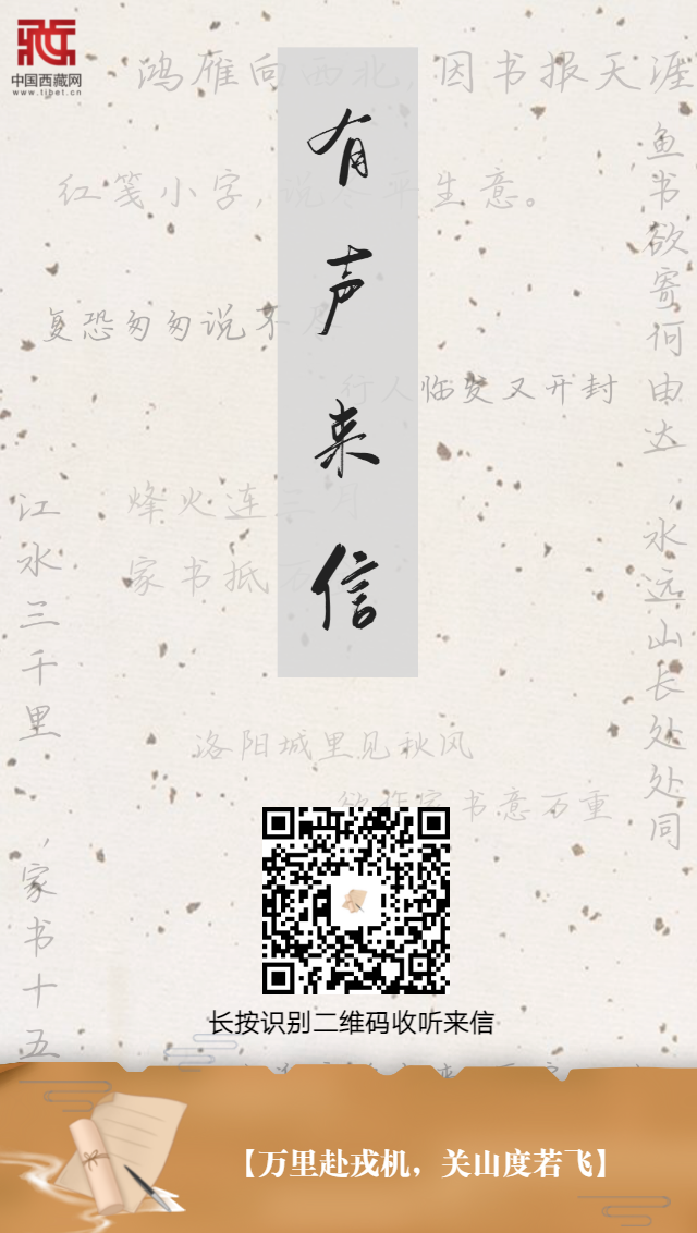 【編者按】穿越歲月長河,翻開一封封紅色家書,感受筆端下的家國情懷和人間煙火。一紙書信明志向,一紙書信道親情,家書中浸透著硝煙與血汗,澎湃著奮斗與信仰,在中國共產黨成立100周年之際,中國西藏網推出融媒體產品[有聲來信],從紙短情長中重溫波瀾壯闊的歷史,感悟革命先輩的心路情懷。本期內容為:萬里赴戎機,關山度若飛