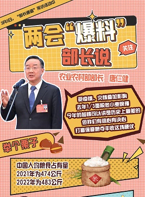 3月5日,“部長通道”采訪活動中,農業農村部部長唐仁健表示 受疫情、災情疊加影響,去年1/3面積冬小麥晚播,今年的苗情可以講是歷史上最差的,但我們有信心有決心打贏保夏糧奪豐收這場硬仗。[詳細]