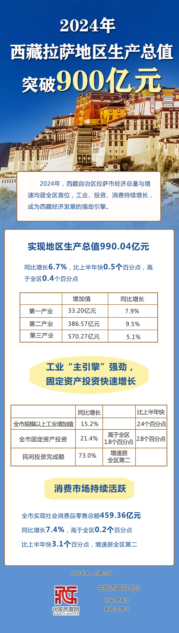 圖解|2024年西藏拉薩地區生產總值突破900億元