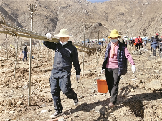 3月27日,區市142家單位的干部職工來到堆龍德慶區乃瓊街道波瑪村,共同參加主題為“積極參與義務植樹,共建綠色幸福拉薩”的義務植樹活動,為拉薩大地再添新綠。