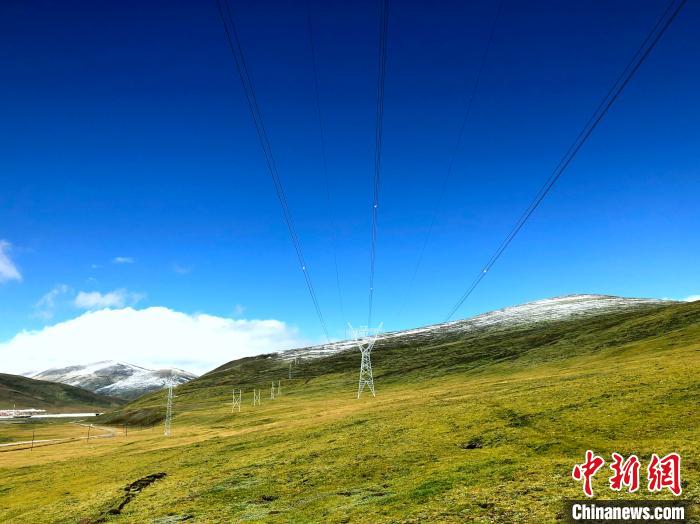圖為世界海拔最高的330千伏輸變電工程玉樹聯(lián)網(wǎng)工程輸電線路穿越高山草原。惠文莉 攝