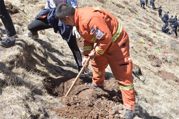 中國西藏網訊 春風送暖日,植綠正當時。近日,昌都市森林消防支隊江達中隊積極參加駐地植樹活動,用實際行動踐行“綠水青山就是金山銀山”的理念,綠化美化“第二故鄉”。
