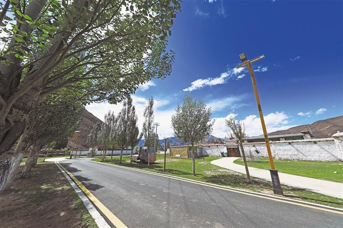 墨竹工卡縣政府前期投入500萬元實施了一批“硬化、亮化、美化、綠化、標準化”的提升村容村貌、改善人居環境的民心工程。該縣從垃圾分類入手,配齊了垃圾分類設備,建立垃圾兌換點;對主要道路鋪設瀝青,接戶道路進行硬化,并配備亮化路燈;安裝綜治網格監控,新建村小組活動室、炒青稞房、磨面房、公共浴室、公共廁所,設置了農家肥集中堆放區,房前屋后栽種桃樹、蘋果樹、柳樹等10種經濟綠化苗木1000余株,新增綠地150畝。