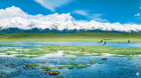 當我們飽覽過青海湖波瀾壯闊之盛景,為青海湖停住腳步的您一定會被眼前這方湛藍水域而深深吸引,柔風拂過湖面蕩起一圈圈漣漪,湖面上低翔而過的水鳥發出清脆鳴叫,水—鳥—魚和諧共生的生態美景躍然眼前。
