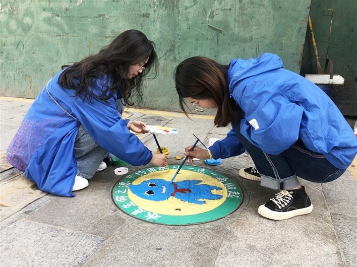 記者了解到,在整個涂鴉過程中,志愿者們從設(shè)計、選擇圖案、填充顏色等各個環(huán)節(jié)都進行了仔細研究,一個個井蓋涂鴉繪畫,色彩靚麗、可愛活潑,引來了眾多居民觀看。這些圖案融入了各類環(huán)保宣傳語,讓原本老舊的井蓋搖身一變成了社區(qū)內(nèi)美麗的風(fēng)景。