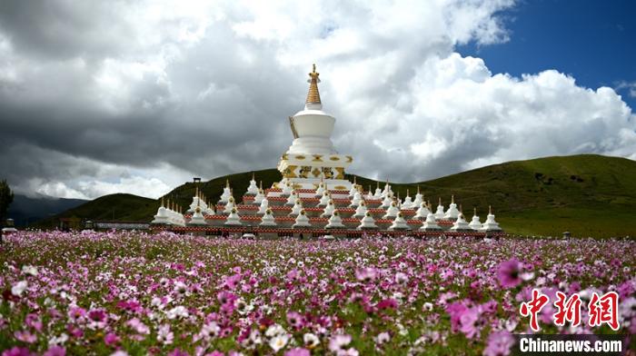 花海中的白塔。 劉忠俊 攝