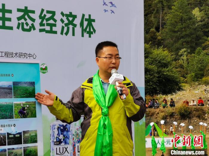 圖為西藏高原草業工程技術研究中心武俊喜博士回顧“力士·綠哈達行動”植草歷程。 張偉 攝
