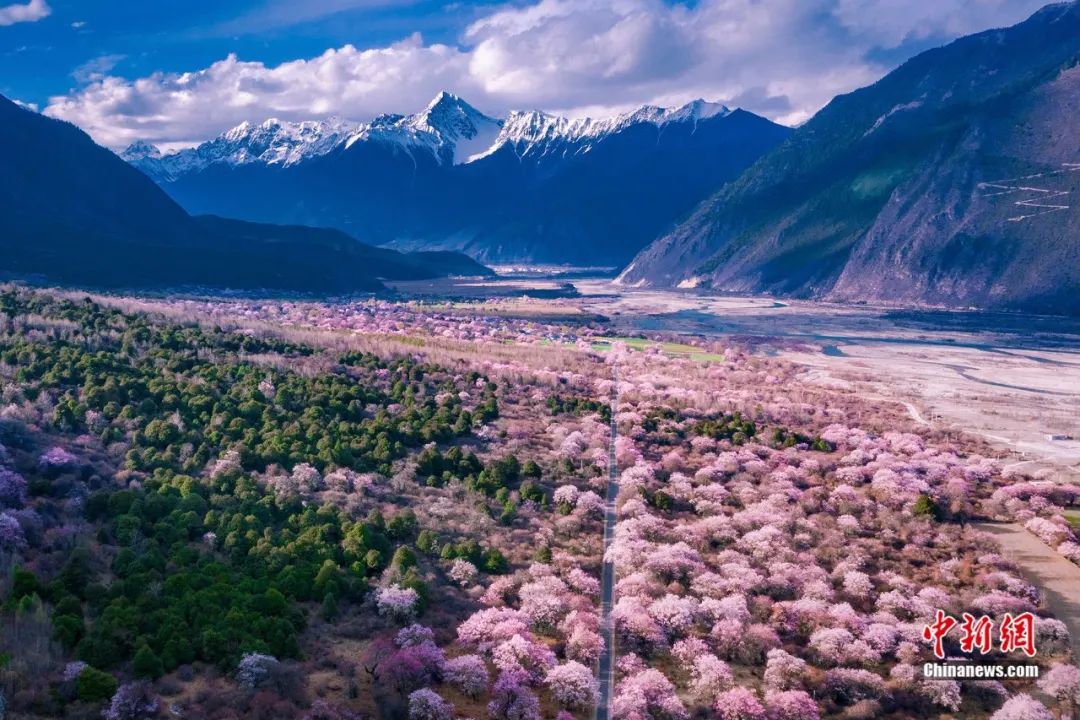 每年三、四月間,東起波密縣,經(jīng)巴宜區(qū),米林縣,西至工布江達(dá)縣,朗縣,田野間,江河畔,村舍旁,千年古桃樹樹干遒勁,樹高花繁,千山萬(wàn)壑花開成海,是望不盡的百里桃花。