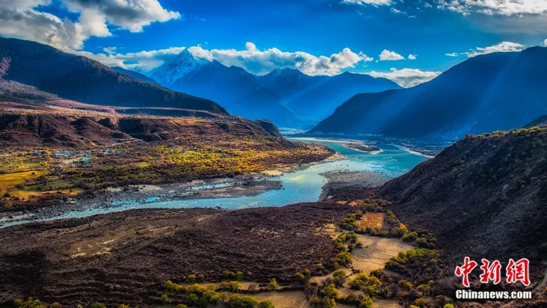 時(shí)值秋末冬初,全長(zhǎng)504.6公里,最深處6009米的雅魯藏布大峽谷呈現(xiàn)出別樣巍峨壯觀,兩岸五彩交織的森林上雪峰林立,谷底奔涌的雅魯藏布江碧水繞田,宛若童話中的仙境。