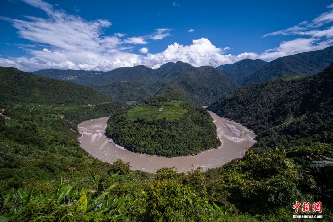 圖為雅魯藏布江在墨脫縣德興鄉(xiāng)境內(nèi)形成大拐彎。何蓬磊 攝