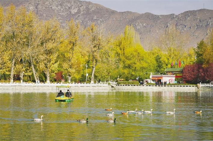記者了解到,布達拉宮廣場管理處還從公益性崗位中抽調8名職工組成工作隊,駕駛船只在湖內“驅趕”飛禽,避免候鳥大量聚集在龍王潭湖面,超過湖水的承載能力,影響龍王潭周邊的生態環境。吳冰告訴記者:“為了更好地保護這些候鳥,避免候鳥聚集,城市管理部門在拉薩河邊及拉薩周邊設立了幾個投食地點,供候鳥們覓食。由于龍王潭水域面積不大,冬季流水速度慢,大量候鳥聚集在這里的話,會有不少市民胡亂投食,影響水質,形成惡性循環,既不利于保護候鳥,也會破壞龍王潭及周邊的生態環境,所以我們通過人工‘驅趕’,將候鳥們引導到拉薩河周邊水域面積較大水面,讓它們更好地棲息。同時,我們也會聯合相關部門對公園內販賣青稞的小販進行清理,勸阻市民向湖內投食的行為。”